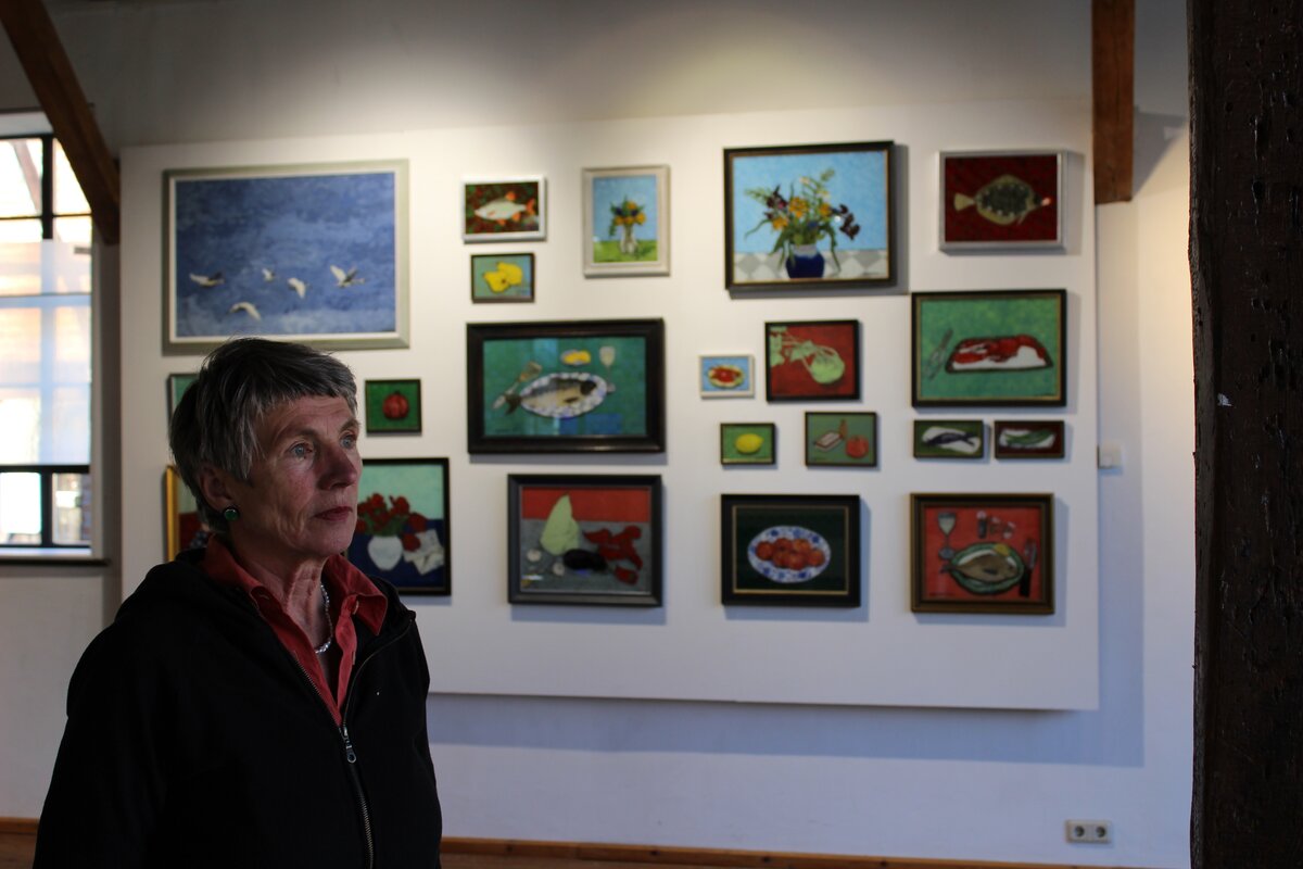 Die beiden beigefügten Bilder zeigen Astrid Germo und Karsten Wittke beim Aufbau. Sie präsentieren bis März 2026 beinahe 50 Gemälde, die sie als Hinterglasmalerei geschaffen haben.